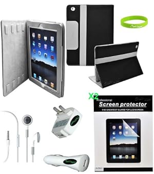 Keep your new Apple iPad 2 iPad 3 3rd Generation iPad HD AT&T Verizon 4G LTE safe and protected in style with this essential accessory bundle. On the go or at home, included accessories will give you the mobility and comfort knowing that your device will never run out of power or get scratched. All included accessories are sturdy leather case, usb car charger, usb wall charger, earphone with microphone, 2 screen protector and a stylish wristband.