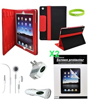 Keep your new Apple iPad 2 iPad 3 3rd Generation iPad HD AT&T Verizon 4G LTE safe and protected in style with this essential accessory bundle. On the go or at home, included accessories will give you the mobility and comfort knowing that your device will never run out of power or get scratched. All included accessories are sturdy leather case, usb car charger, usb wall charger, earphone with microphone, 2 screen protector and a stylish wristband.
